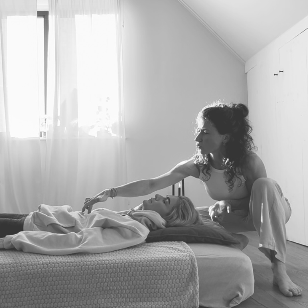 ✺ Je gaat comfortabel op de matras liggen, waarna we beginnen met een meditatie om tot diepe ontspanning te komen en verbinding te maken met jouw intentie.