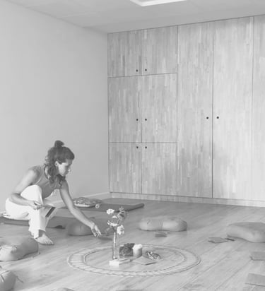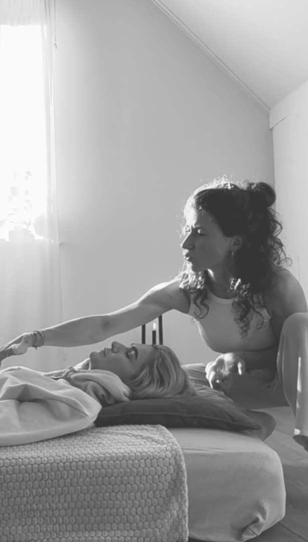 ✺ Je gaat comfortabel op de matras liggen, waarna we beginnen met een meditatie om tot diepe ontspanning te komen en verbinding te maken met jouw intentie.